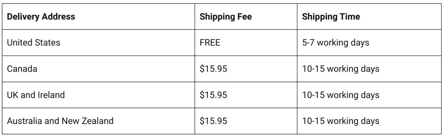 All orders include tracking information provided via email within 48–60 hours after shipment.